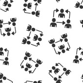 Ludzie komunikują się ikoną w płaskim stylu. Ilustracja wektora ludzi na białym tle. Koncepcja biznesowa oparta na bezproblemowym partnerstwie.