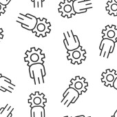 Ludzie z ikoną biegów w płaskim stylu. Ilustracja wektora koła zębatego osoby na białym, izolowanym tle. Praca zespołowa bezproblemowa koncepcja biznesowa wzorca.