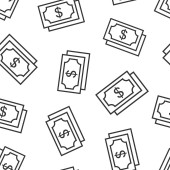 Ikona banknotów w walucie pieniężnej w płaskim stylu. Ilustracja wektora gotówki dolara na białym, izolowanym tle. Koncepcja biznesowa dotycząca banknotów bez szwu.