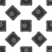 Ikona bezpiecznych pieniędzy w płaskim stylu. Strongbox wektor ilustracja na białym odizolowanym tle. Finansowe bezpieczeństwo płynny wzór koncepcji biznesowej.