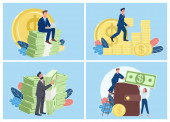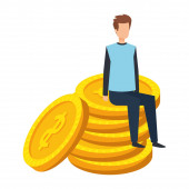 Zdjęcie "Udane pracownika siedzi na stosie pieniędzy płaskie pojęcie wektor ilustracji. Osoba zarabiająca pieniądze online. Człowiek pracujący na laptopie 2D postać z kreskówek do projektowania stron internetowych. Tworzenie kreatywnego pomysłu zysku" może być wykorzystywane do celów osobistych i komercyjnych zgodnie z warunkami zakupionej licencji Royalty-free. Obraz jest dostępny do pobrania w jakości wysokiej rozdzielczości do 5760x3840.