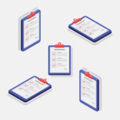 Lista kontrolna Isometric left view - Black Stroke + Ikona cienia wektor izometryczny.