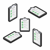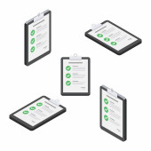 Lista kontrolna Isometric & Flat - White Stroke + wektor ikony cienia.