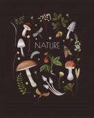 grzyby natura kreskówka wektor ręcznie rysowane granicy