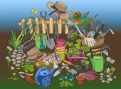 Ogrodnictwo ręcznie rysowane wektor bazgroły ilustracja