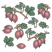 Ręcznie rysowane maliny. Zestaw przedmiotów.