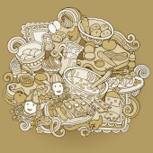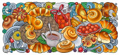 Słodycze, jagody, owoce, napoje ilustracja