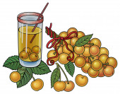 Sok, jagody, czereśnie ręcznie rysowane ilustracja