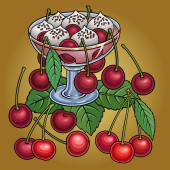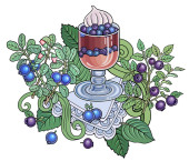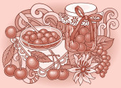 Herbata, jagody, owoce ręcznie rysowane ilustracja