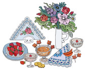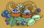 Herbata, jagody, owoce ręcznie rysowane ilustracja