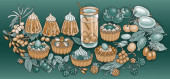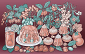Słodycze, jagody, owoce ręcznie rysowane ilustracja