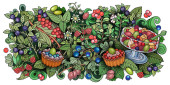 Owoce, jagody, słodycze ręcznie rysowane ilustracja