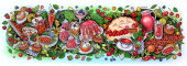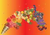 Słodycze, jagody, owoce, napoje ilustracja