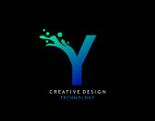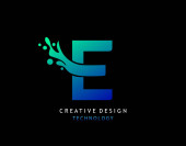 Litera F: Logo rozprysku wody. Nowoczesna ikona alfabetu Techno, szablon.