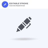 Wektor ikony długopisu, wypełniony płaski znak, solidny piktogram odizolowany na białym, ilustracja logo. Ikona wstrzykiwacza do prezentacji.