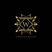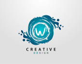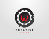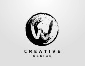 List W Logo z okrągłym elementem grunge. Wzór projektu retro logo.