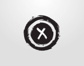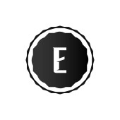 Logo litery E z okrągłym elementem grunge 'a. Wzór projektu retro logo.