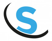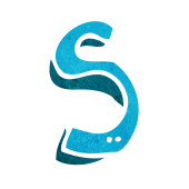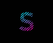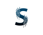S Logo literowe z niebieskim elementem krążka okręgu. Wzór logo Blue Wave Retro.