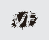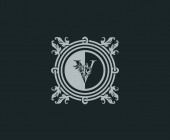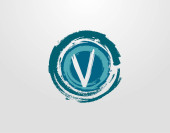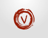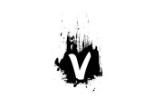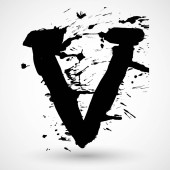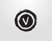 V Logo literowe z czarnym elementem kwadratowym. Szablon projektu logo Grunge Retro.