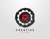 V Logo literowe z przekładnią i kołem elementarnym. Wzór logo Retro Gear.