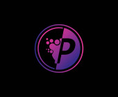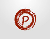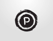 Logo literowe P w elemencie Grunge Placu Czerwonego. Wzór logo Retro Rusty Square.