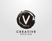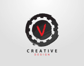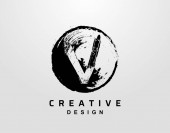 V Logo literowe z ręcznie rysowanym elementem linii grunge. Elementy projektu w stylu Vector Urban grunge