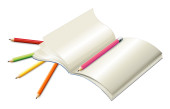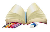 tabela z pustym notatnik, ołówki, zszywacz i nożyczek