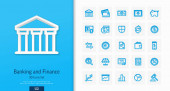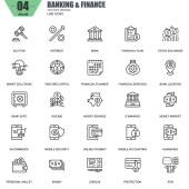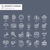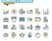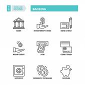Cienkie ikony zestawu bankowości. Wysokiej jakości symbole zarysu, edytowalny skok. Piksel idealny. Ilustracje wektorowe do tworzenia stron internetowych i aplikacji, prezentacji biznesowej, materiałów marketingowych.