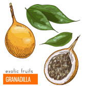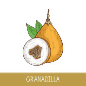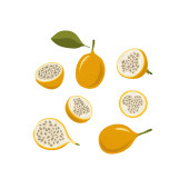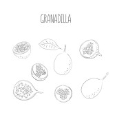 Wektorowy zestaw marakuji, marakuja. Ręcznie rysowana stylizowana granadilla. Ilustracja wektora, odizolowana na białym tle. Ilustracja do logo lub ikony.