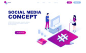 Zdjęcie "Koncepcja social media płaska strona lądowania. Zespół marketingu tworzenia wysokiej jakości treści wideo dla mediów społecznościowych wektor ilustracji. Reklama internetowa promocja strony internetowej kompozycja z postaciami ludzi" może być wykorzystywane do celów osobistych i komercyjnych zgodnie z warunkami zakupionej licencji Royalty-free. Obraz jest dostępny do pobrania w jakości wysokiej rozdzielczości do 5760x3840.