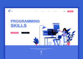 Umiejętności programowania płaska strona lądowania. Zespół programistów tworzenie, testowanie i programowanie aplikacji wektorowej ilustracji. Tworzenie oprogramowania skład strony internetowej z postaciami ludzi.