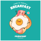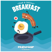 Vintage jedzenie plakat projekt z pizzą, burger, frytki, żeberka, postaci naleśniki.
