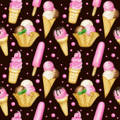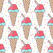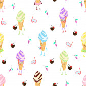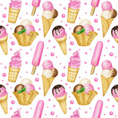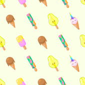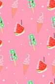 Kreskówkowe lody. Płynny wzór. Ilustracja wektora izolowana na różowym tle.