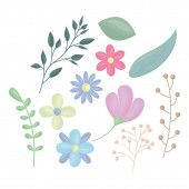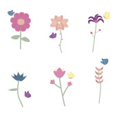 Zestaw ręcznie rysowane proste pastelowe kwiaty wektorowe i rośliny.