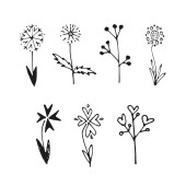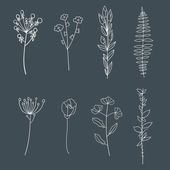 Zestaw ręcznie rysowane proste pastelowe kwiaty wektorowe i rośliny.