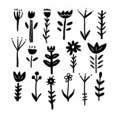 Zestaw ręcznie rysowane proste pastelowe kwiaty wektorowe i rośliny.