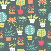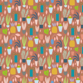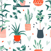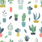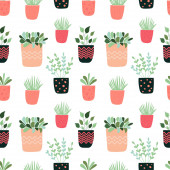 Pakiet ręcznie rysowane kwiaty doodle i rośliny. Dziewczęce ilustracje boho. Kaktusa w garnkach. Wzór szwów.