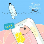 Wpływ zanieczyszczenia z tworzyw sztucznych na owoce morza. Koncepcja zanieczyszczenia oceanu. Ilustracja wektora.