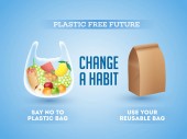 Typograficzna konstrukcja stopu z tworzywa sztucznego jednorazowego użytku i wybrać do ponownego użycia, z blokady i odblokowania sztuczki. Zmień nawyk. Ilustracja wektora.
