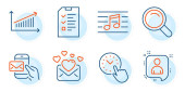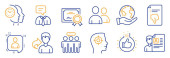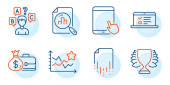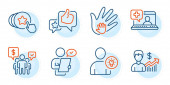 Zdjęcie "Pracownicy rozmawiają, dokumenty Cv i znaki podobne. Wiadomości konwersacyjne, wykres wykresu i ikony czatu pomocy technicznej ustawione. Kliknij rękę, symbole zarządzania. Komunikacja, raport. Ludzie gotowi. Wektor" może być wykorzystywane do celów osobistych i komercyjnych zgodnie z warunkami zakupionej licencji Royalty-free. Obraz jest dostępny do pobrania w jakości wysokiej rozdzielczości do 5760x3840.