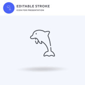 Ikona delfina wektor, wypełniony płaski znak, solidny piktogram izolowany na białym, ilustracja logo. Ikona delfina do prezentacji.