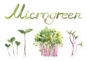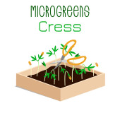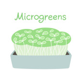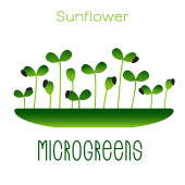 Mikrozielone Słoneczniki. Wzornictwo opakowań nasion, okrągły element w środku. Sprouting nasiona rośliny