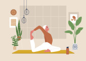 Zdjęcie "Młoda kobieta robi deskę. Trening sportowy, gimnastyka w domu. Ilustracja wektora płaskiego." może być wykorzystywane do celów osobistych i komercyjnych zgodnie z warunkami zakupionej licencji Royalty-free. Obraz jest dostępny do pobrania w jakości wysokiej rozdzielczości do 5760x3840.