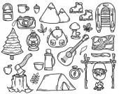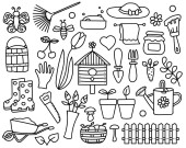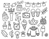 Zestaw elementów kuchennych doodle. Linia zbierania i zarys narzędzi do gotowania. Sztućce do bazgrołów. Ręcznie rysowany wektor ilustracji. Odizolowany na białym tle. Do projektowania, tworzenia stron internetowych, grafiki.