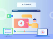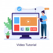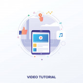Koncepcja samouczka wideo oglądanie ekranu laptopa odtwarzanie wideo bańka Dyskusja instrukcja z płaskim stylu wektor projektu