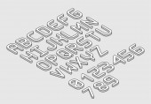 Izometryczna czcionka wektora alfabetu 3D. Litery i liczby