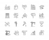 Zestaw ikon wektorowych dekoracji wnętrz, remontów i napraw w stylu cienkiej linii