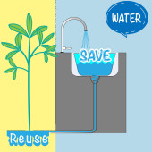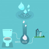 Ponowne wykorzystanie koncepcji ścieków. Zachowaj metaforę środowiskową. Recykling ścieków z gospodarstw domowych. Symbol domowego systemu ponownego wykorzystania wody. Wektor ilustracja zarys płaski design styl.