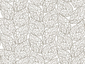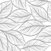 bezszwowe szare abstrakcyjne tło z białymi liśćmi narysowanymi cienkimi liniami