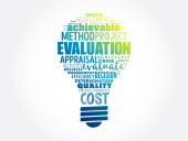Ocena światła żarówki słowo chmura collage, tło koncepcja biznesu